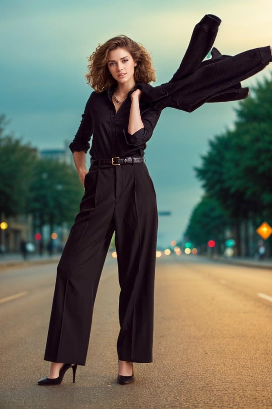 imageHOTOUCH Button Down Shirt for Women Basic Work Office Drop Shoulder Blouse Casual Loose Long Sleeve Tops with PocketBlack