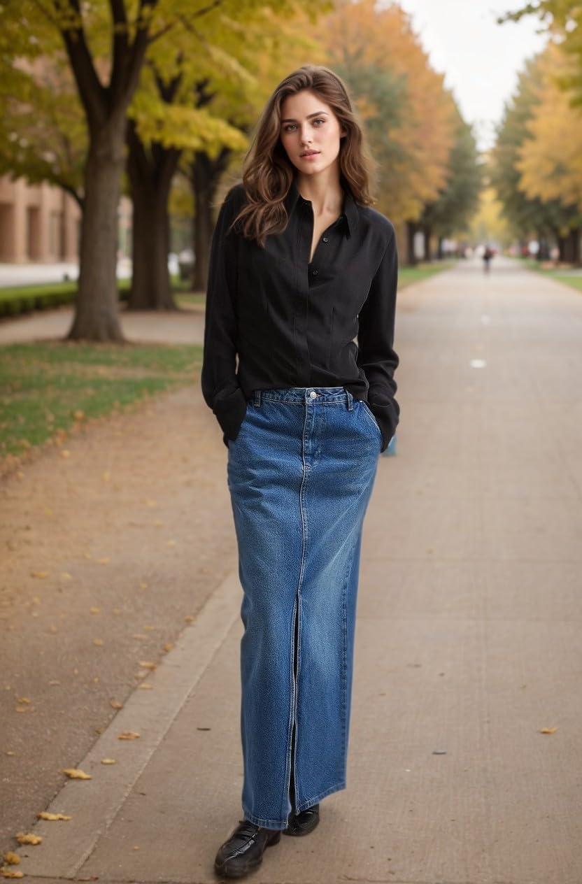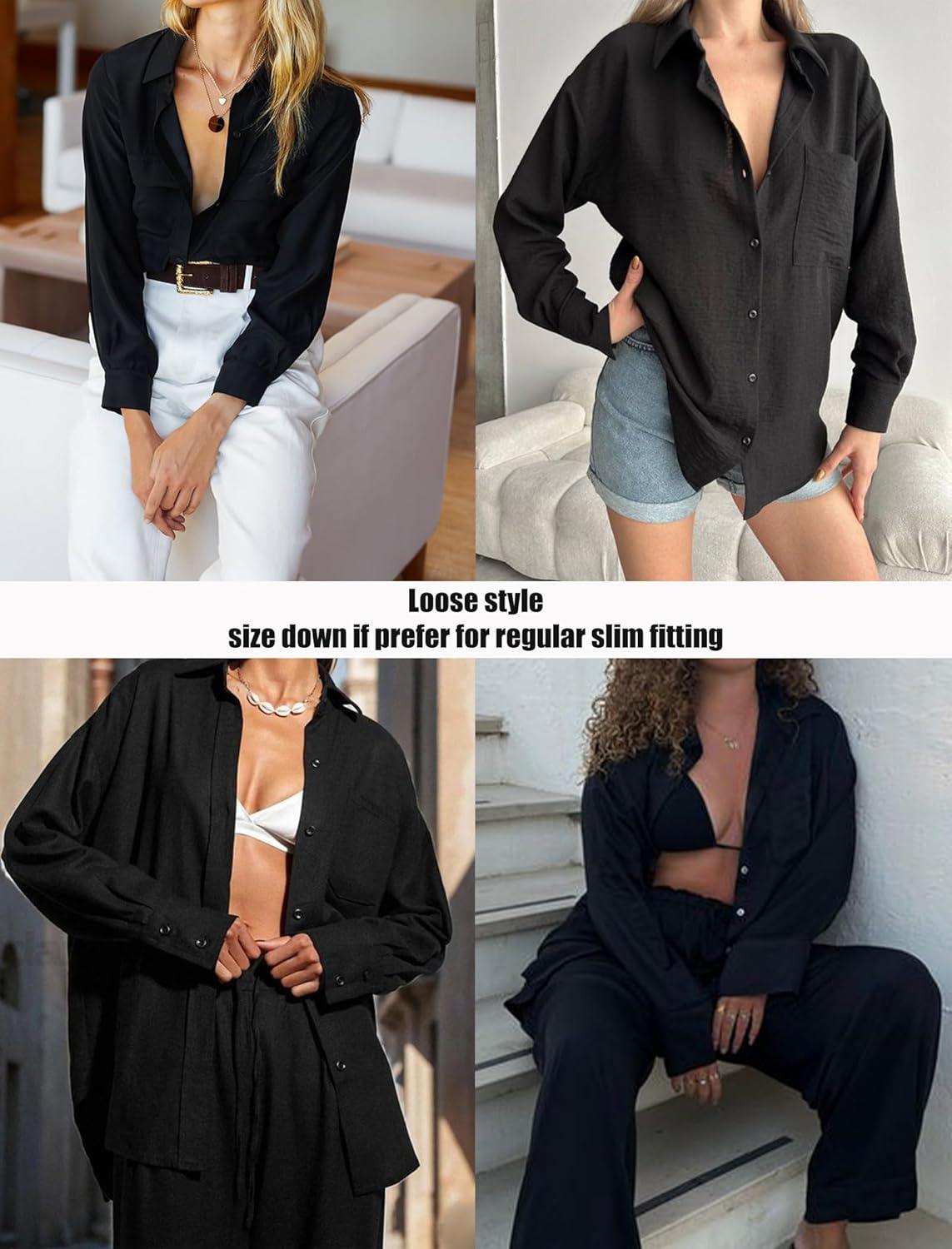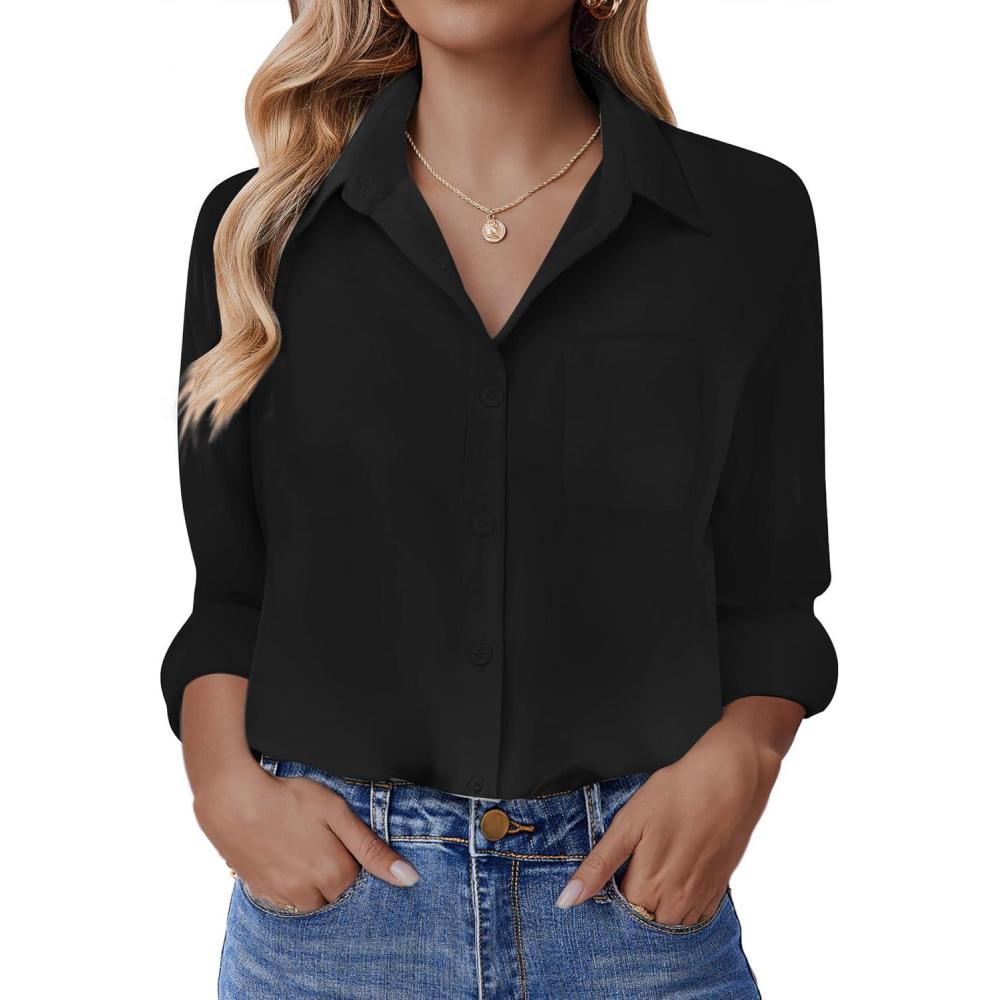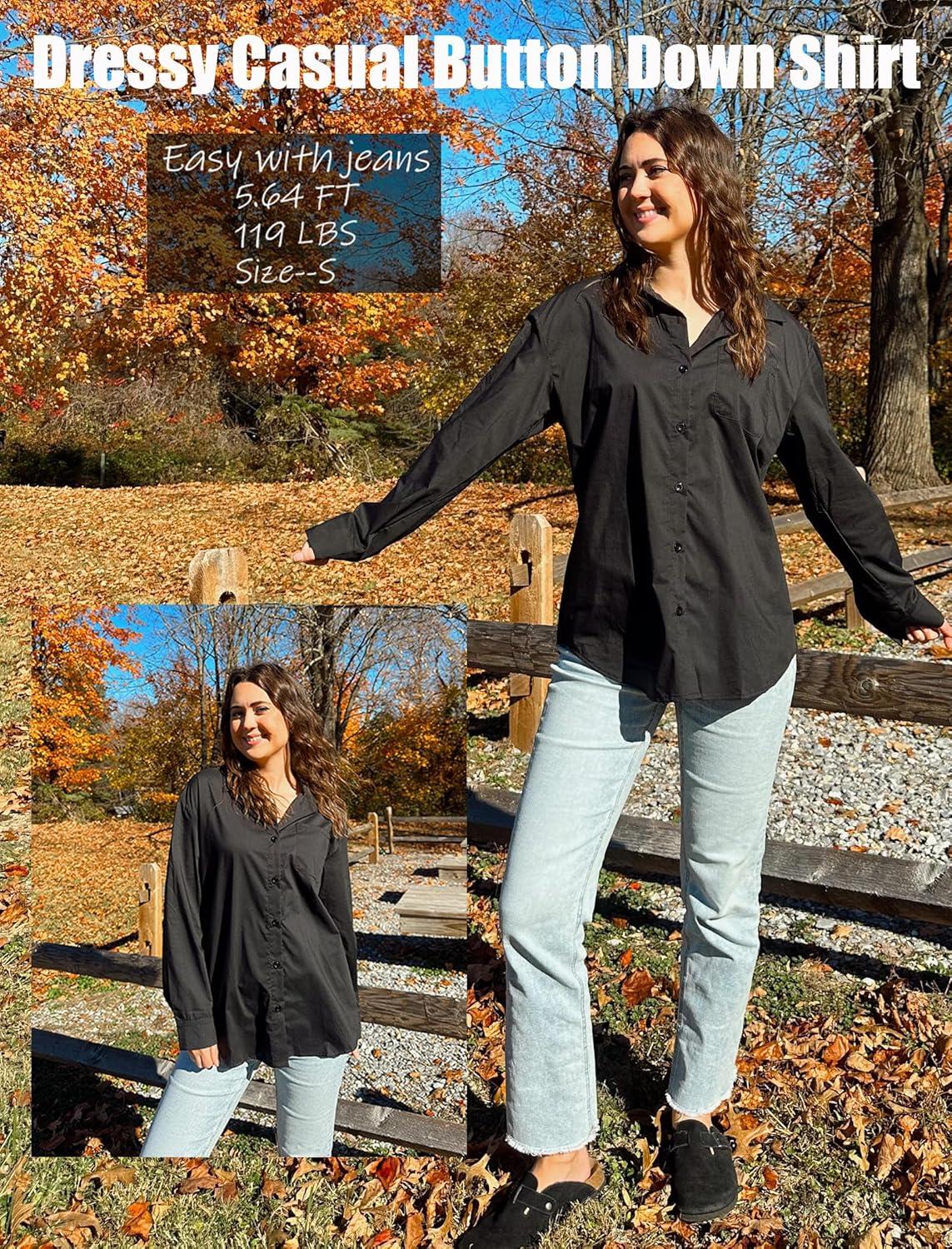 HOTOUCH Button Down Shirt for Women Basic Work Office Drop Shoulder Blouse Casual Loose Long Sleeve Tops with Pocket(Black)