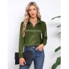 imageHOTOUCH Satin Shirts for Women Silk Button Down V Neck Dressy Casual Blouse Loose Long Sleeve Office Work Tunic TopsOlive Green