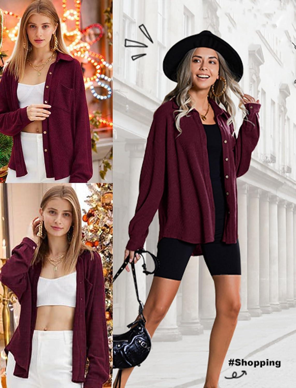 Be the first to review “HOTOUCH Waffle Button Down Shirts for Women Dressy Casual Work Shacket V Neck Long Sleeve Lightweight Tops with Pocket(Wine Red)”