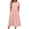 imageHOTOUCH Women Dress 2025 Short Sleeve Floral Midi Loose Tshirt Dresses Aline Flowy Swing Beach Sundress with PocketsPink Round Dot