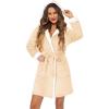 imageHOTOUCH Womens Hooded Bathrobe Fleece Robe Super Soft Plush Robe Velour BathrobeH Cream