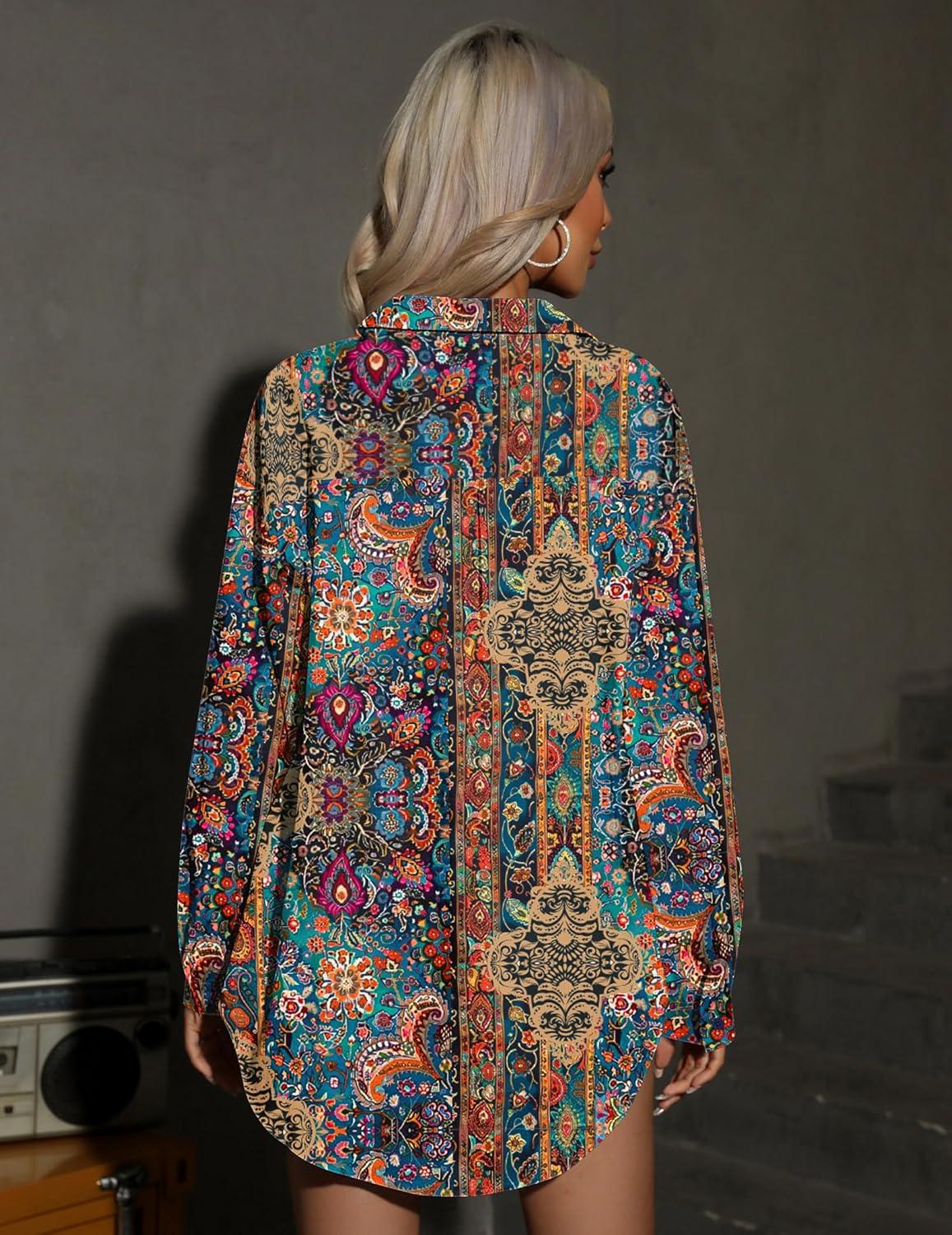 HOTOUCH Women Oversized Button Down Shirts Office Drop Shoulder Blouse Long Sleeve Boyfriend Dress Shirt with Pockets(A-multicolor Floral)