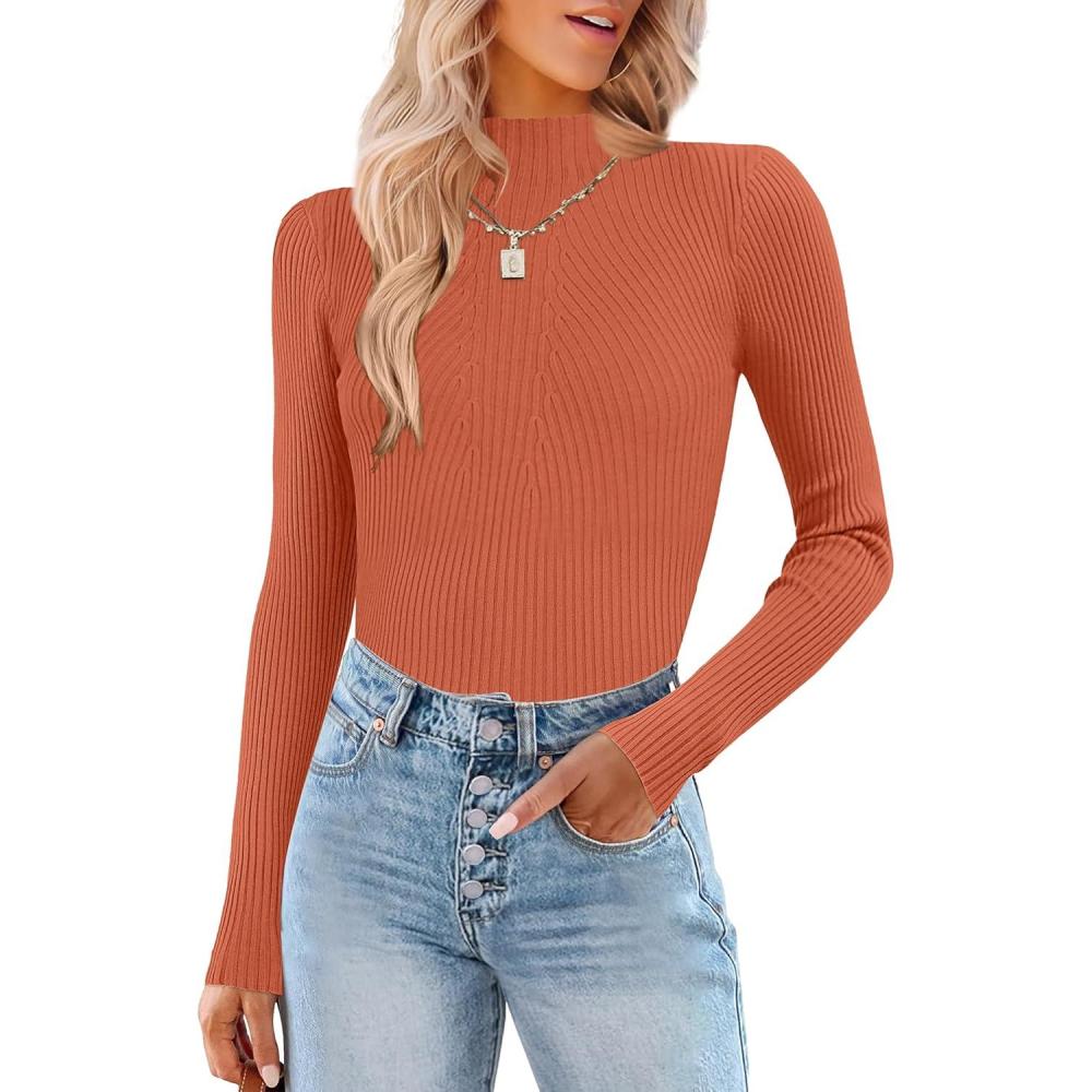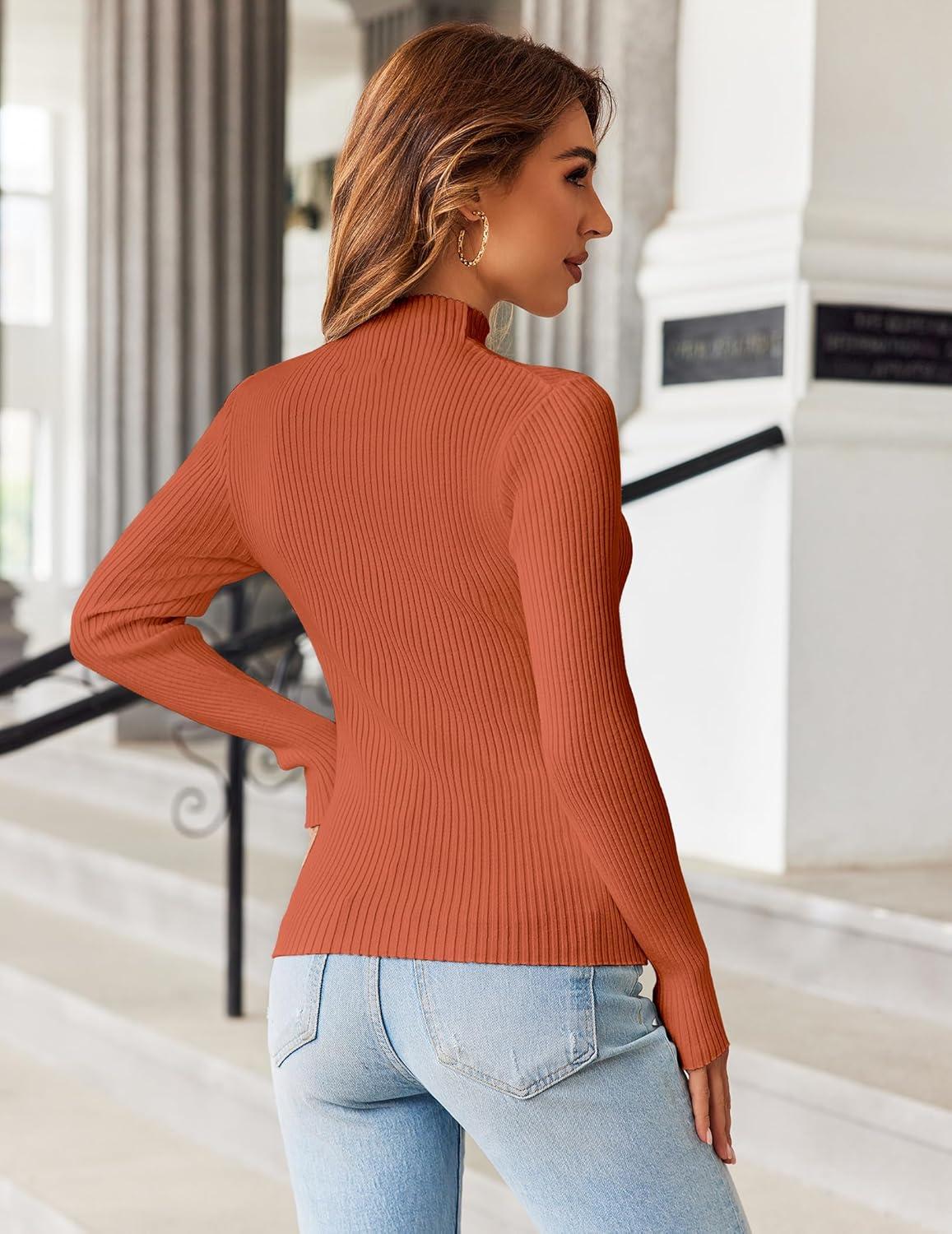 HOTOUCH Women Turtleneck Tops Mock Neck Sweater Ribbed Knit Basic Casual Long Sleeve Shirt Fall Winter Clothing 2025 Trendy(Brickred)