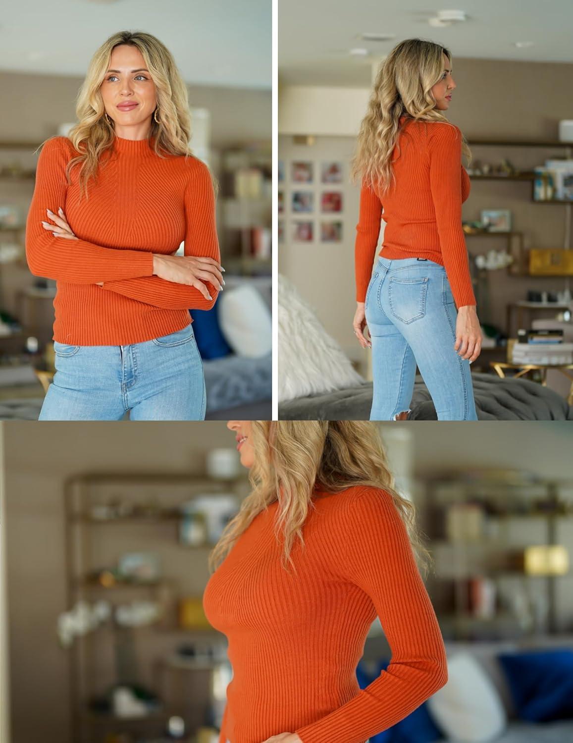 HOTOUCH Women Turtleneck Tops Mock Neck Sweater Ribbed Knit Basic Casual Long Sleeve Shirt Fall Winter Clothing 2025 Trendy(Caramel)