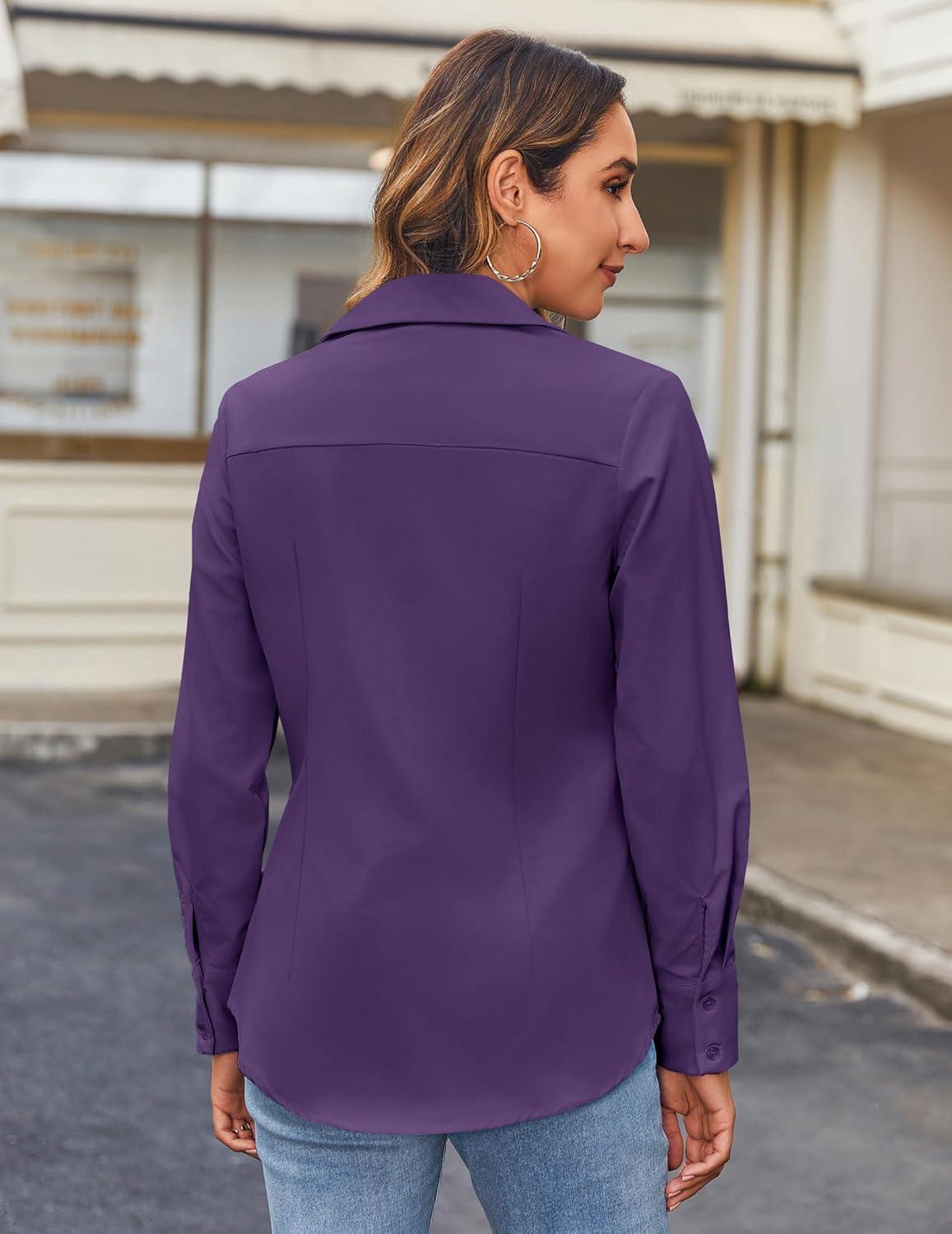 HOTOUCH Women's Button Down Shirts Long Sleeve Dress Shirt Slim Fitted Work Tops Collared Dressy Casual Business Blouses(Purple)