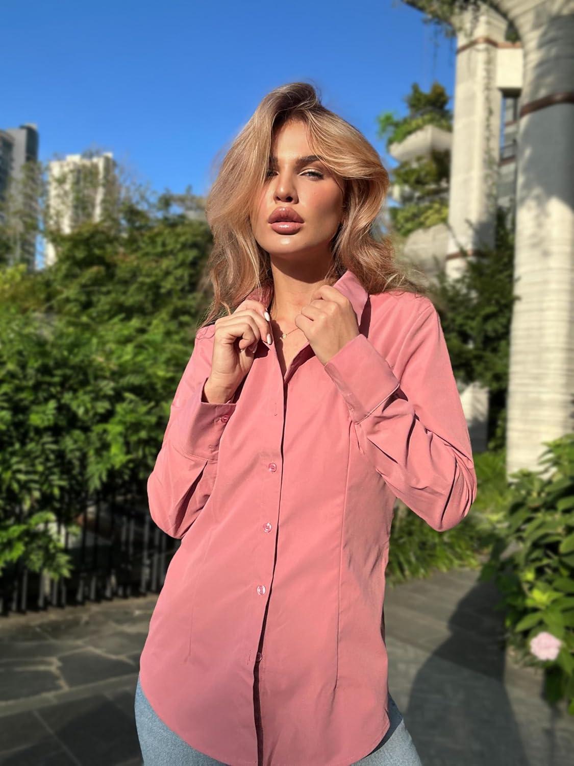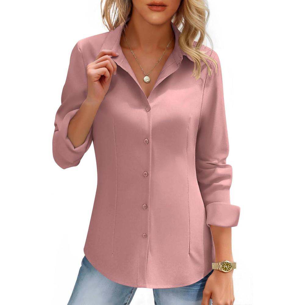 imageHOTOUCH Womens Button Down Shirts Long Sleeve Dress Shirt Slim Fitted Work Tops Collared Dressy Casual Business BlousesRed Classic
