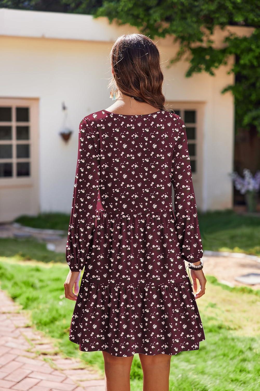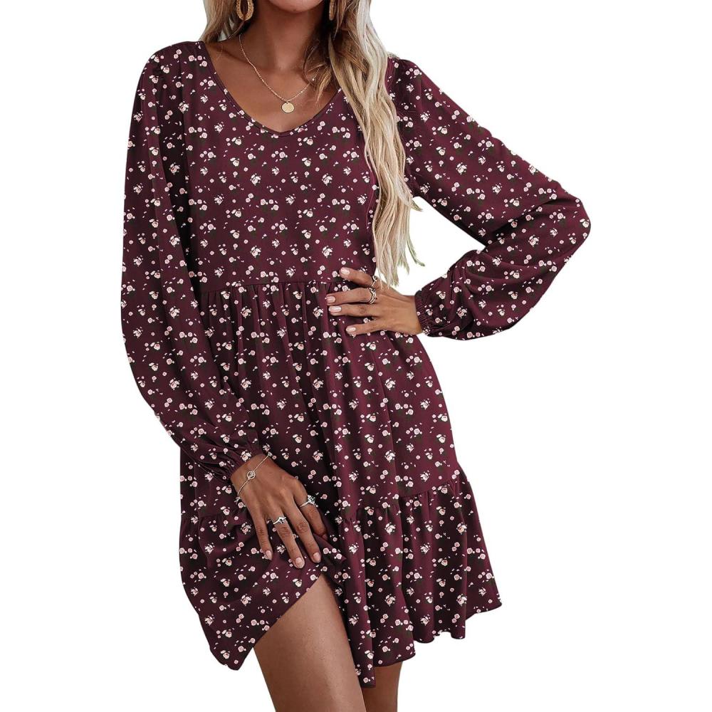Be the first to review “HOTOUCH Womens Casual A Line Dress V Neck Tiered Long Sleeve Fit Swing Dress with Pockets Loose Ruffled Dresses(Red Floral-02)”