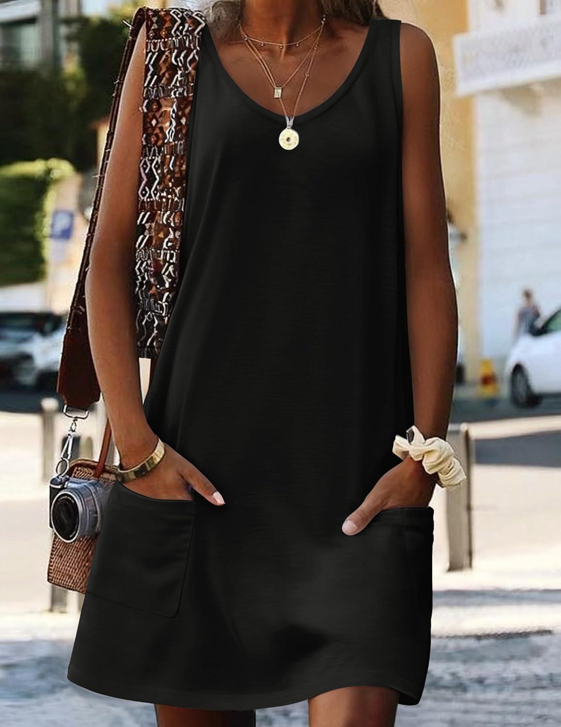 imageHOTOUCH Womens Casual Sundress with Pockets Summer Beach Dress Floral TShirts Dress V Neck Loose Tank DressesBlack