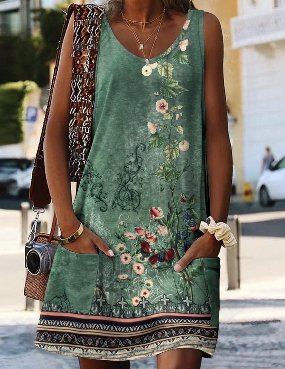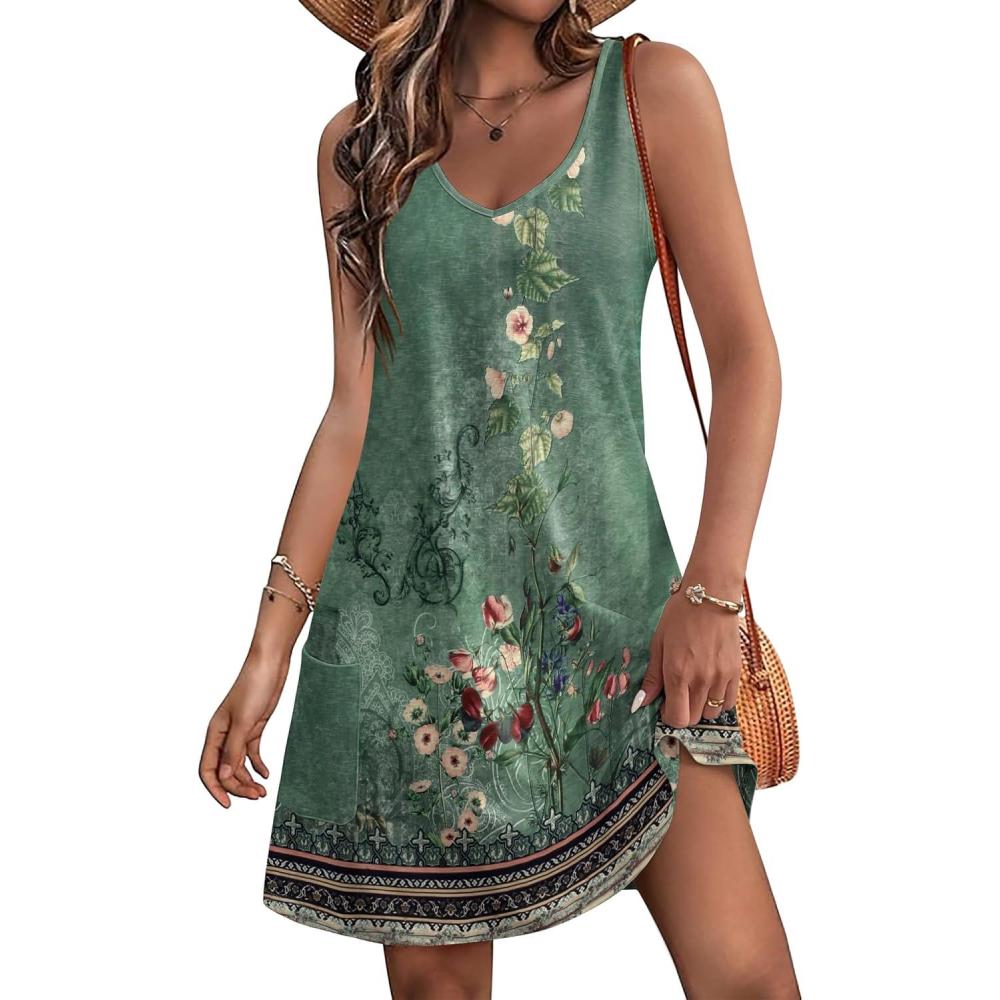imageHOTOUCH Womens Casual Sundress with Pockets Summer Beach Dress Floral TShirts Dress V Neck Loose Tank DressesGreenprint