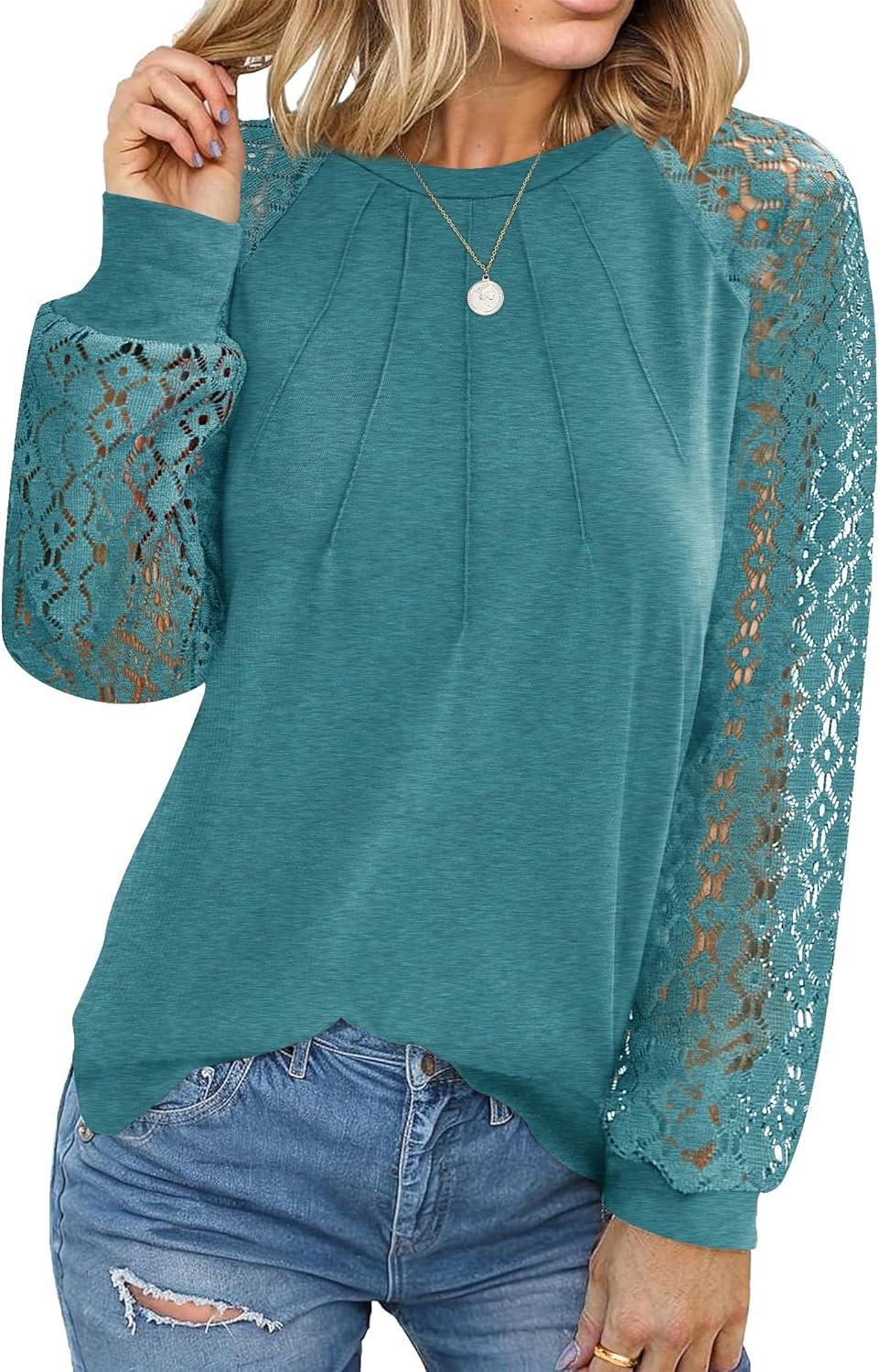 imageHOTOUCH Womens Lace ShortLong Sleeve Tops Fall Dressy Casual Blouses Business Work Shirts Fashion Clothe Trendy OutfitsAteal Long Sleeve