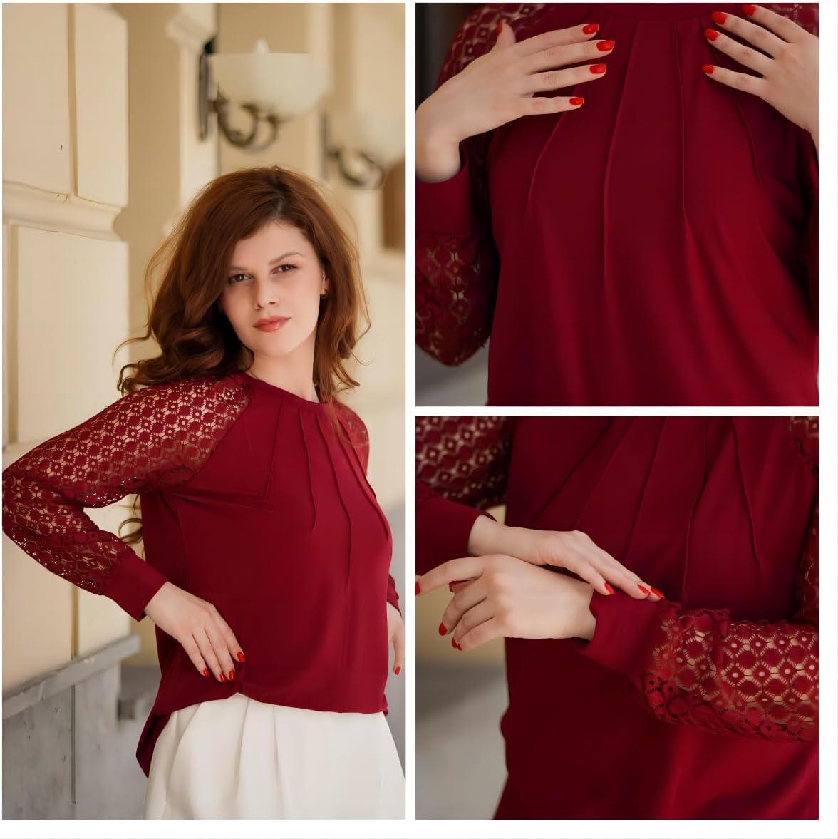 imageHOTOUCH Womens Lace ShortLong Sleeve Tops Fall Dressy Casual Blouses Business Work Shirts Fashion Clothe Trendy OutfitsAwine Red Long Sleeve