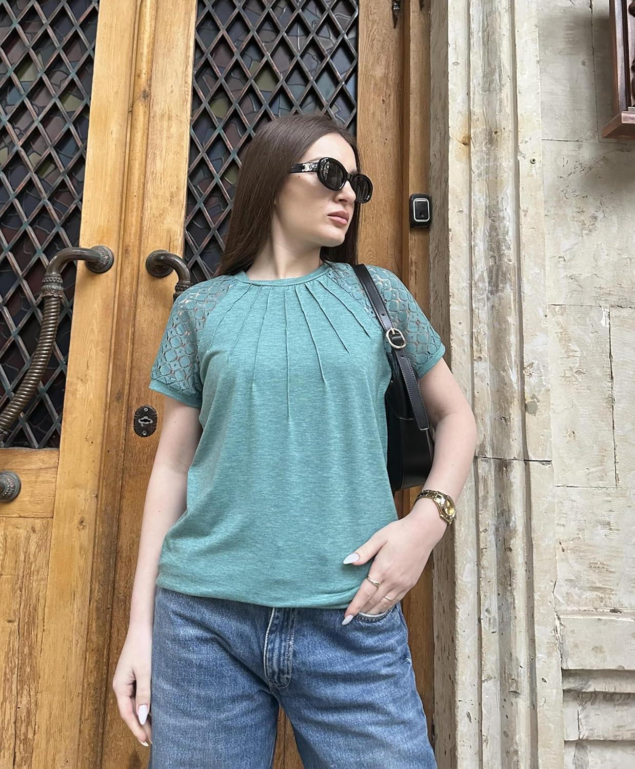 HOTOUCH Womens Lace Short/Long Sleeve Tops Fall Dressy Casual Blouses Business Work Shirts Fashion Clothe Trendy Outfits(Short Sleeve Green)