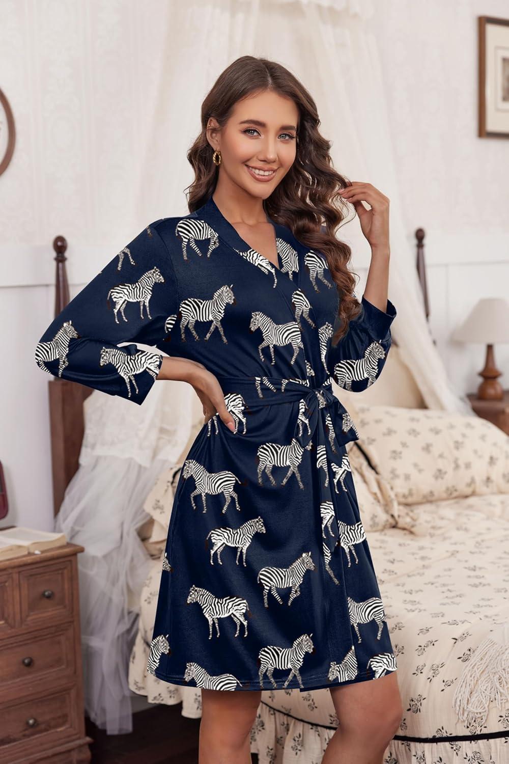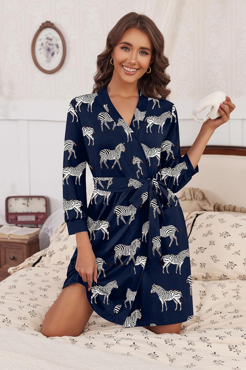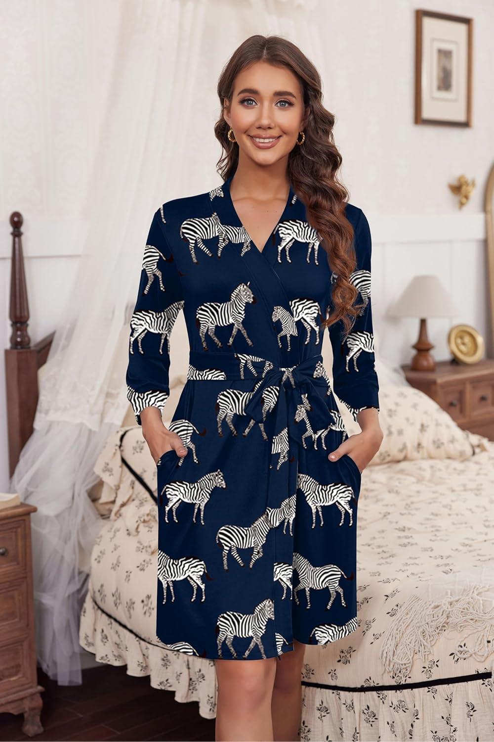 HOTOUCH Womens Robe Lightweight Short Knit Bathrobe Soft Ladies Sleepwear with Pockets(P Zebra)
