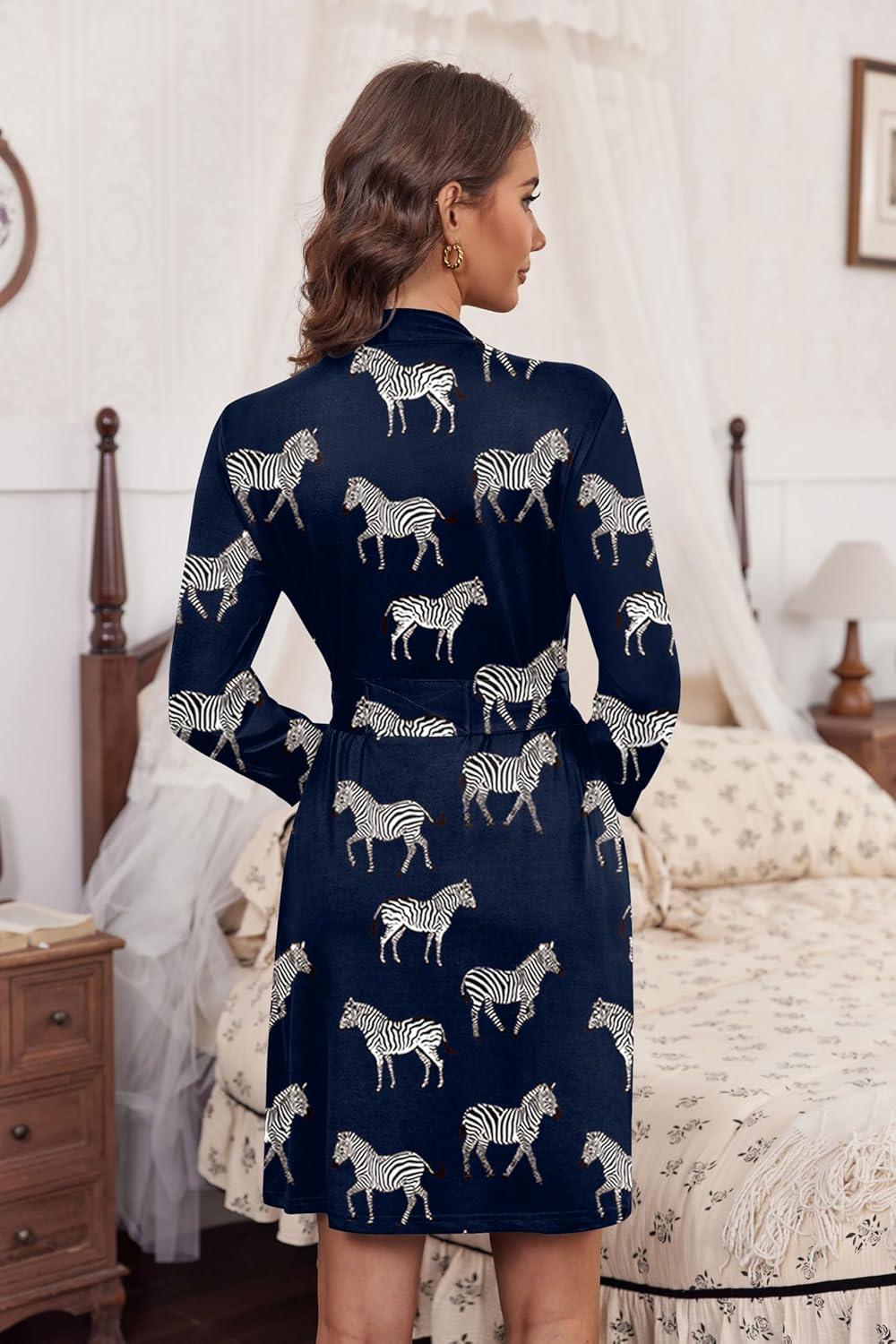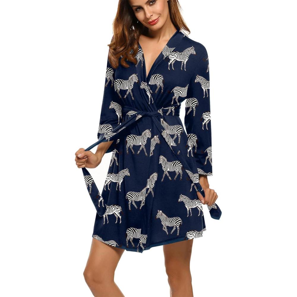 imageHOTOUCH Womens Robe Lightweight Short Knit Bathrobe Soft Ladies Sleepwear with PocketsP Zebra