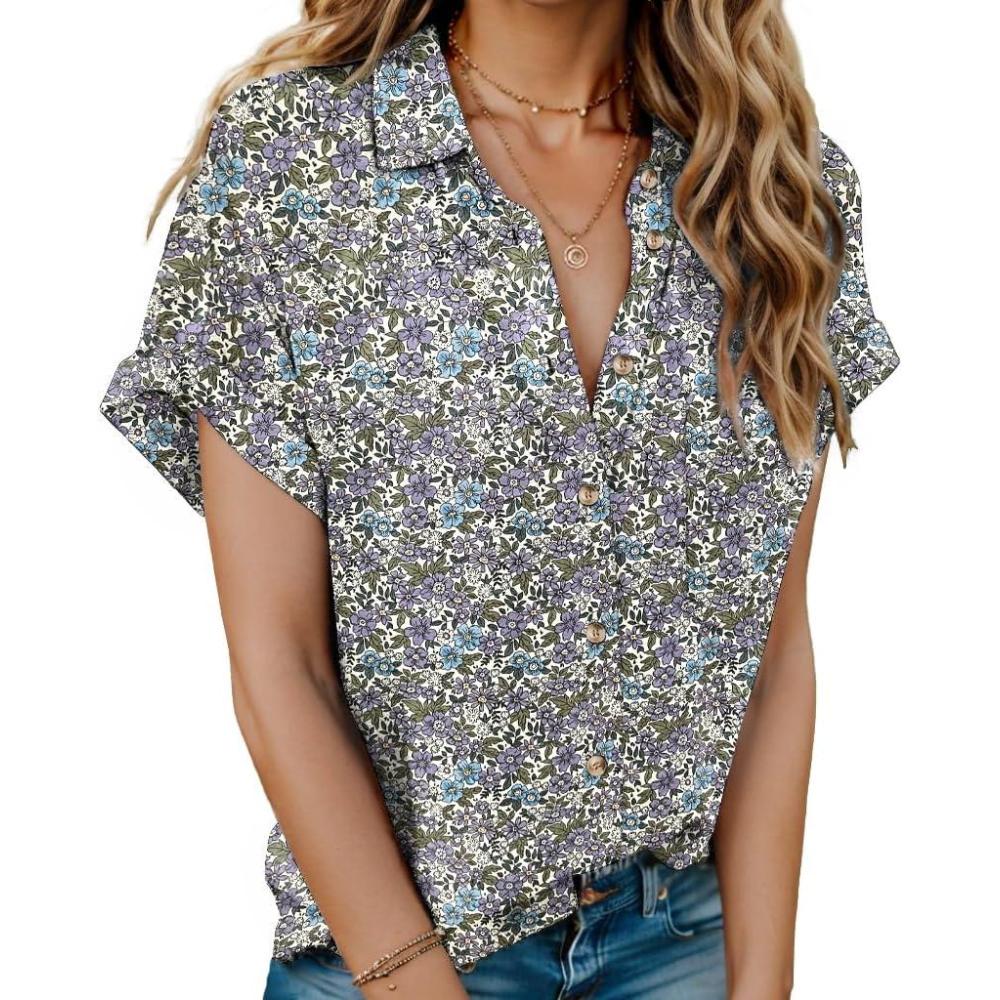 imageHOTOUCH Womens Short Sleeve Button Down Collared ShirtFloral Purple